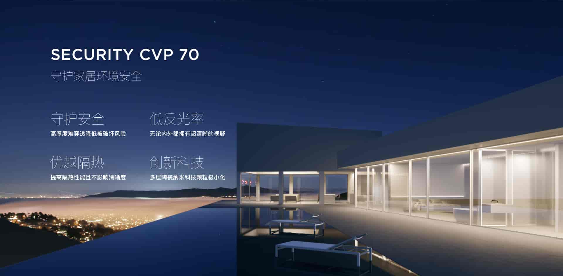 传统窗膜高隔热意味着低透光率,SECURITY CVP 70采用全新多层纳⽶陶瓷颗粒分⼦细化技术,创新科技大大提升传统玻璃的红外阻隔性能,达到优越隔热性能的同时提⾼视觉清晰度。